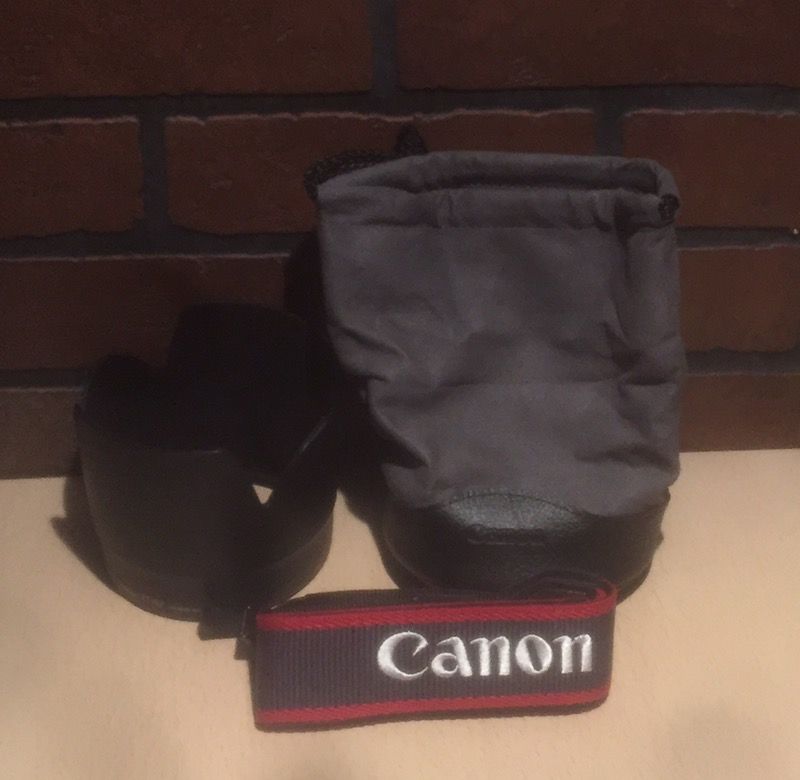 Set includes an ET-87 petal lens hood, an LP1219 lens pouch, and a strap. All are genuine Canon products.