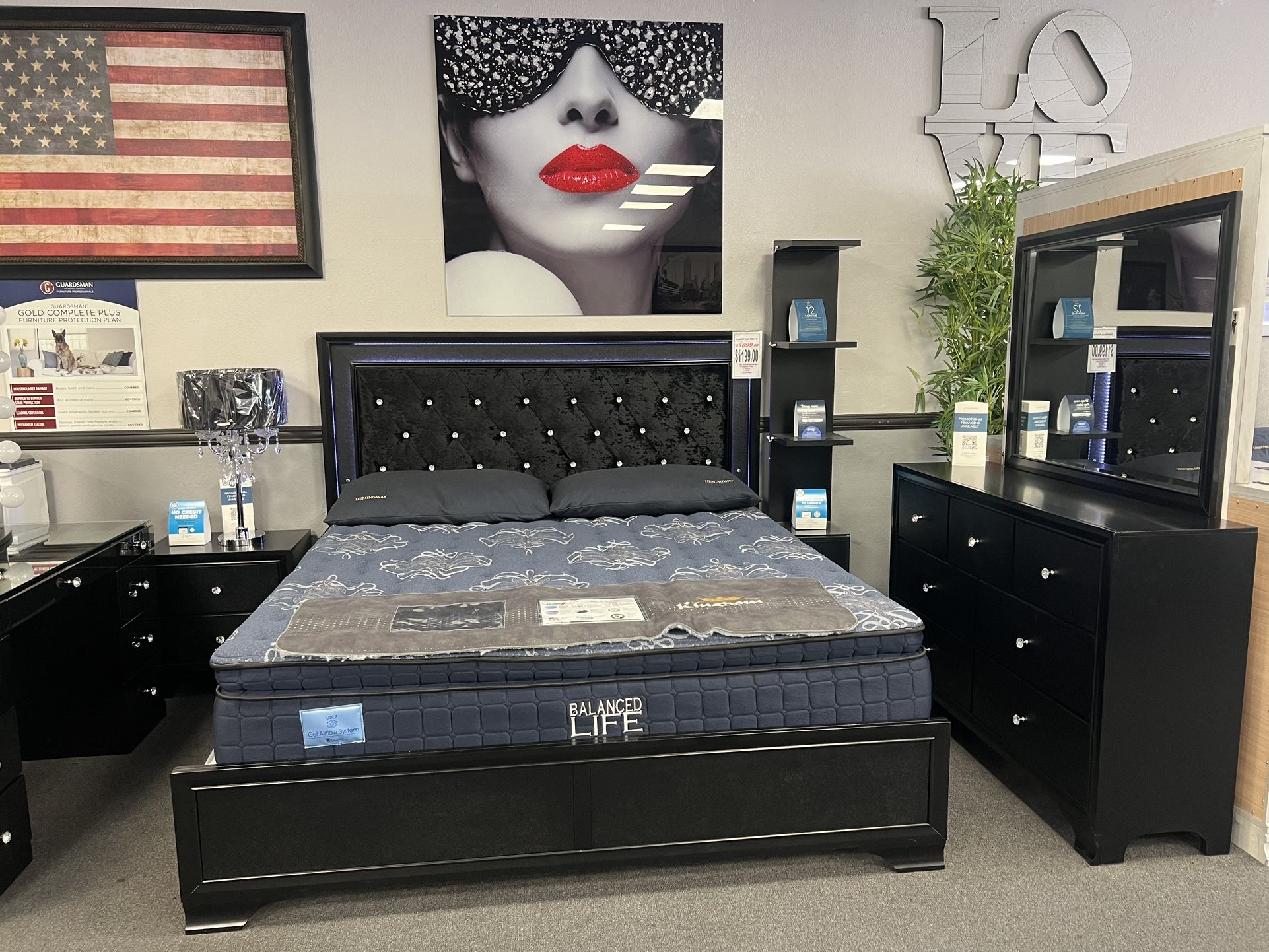 4PC Black King Bedroom Set w/ LED Lights