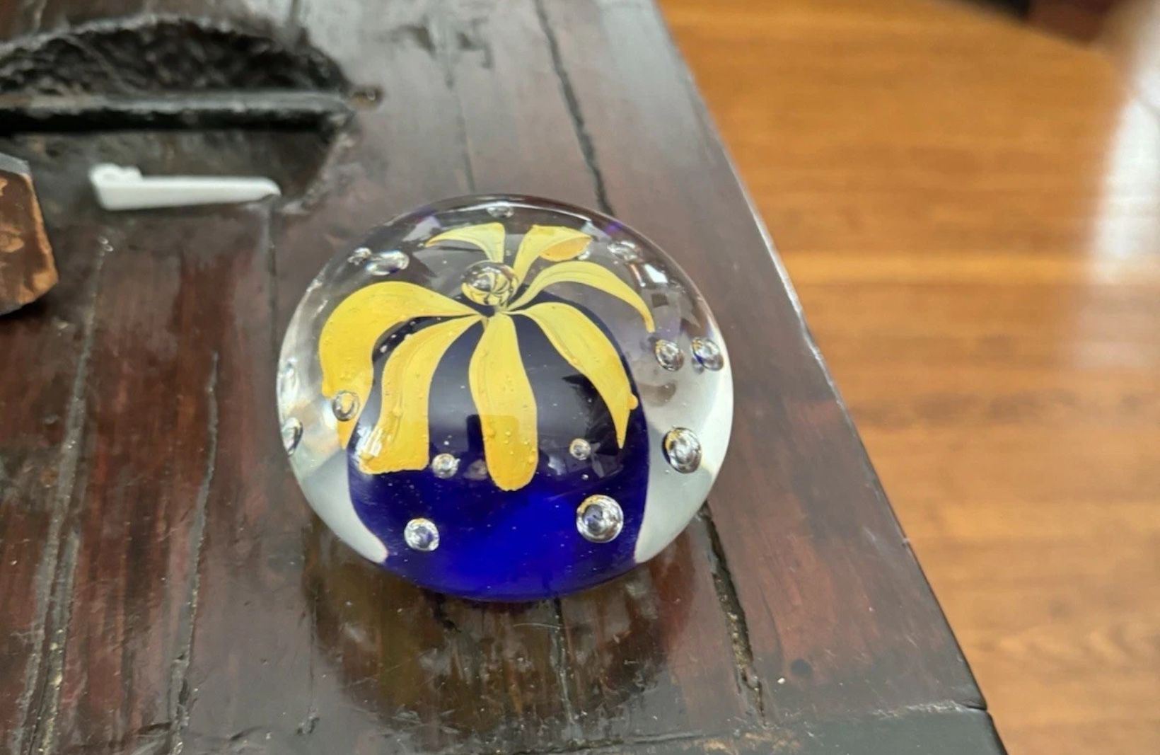 Glass Paperweight with Yellow Floral Design