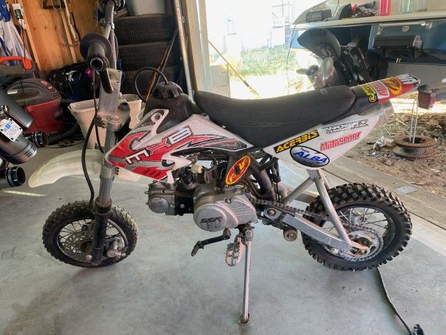 110 pitbike. Needs new front tire and carb clean . Ran perfect when parked.