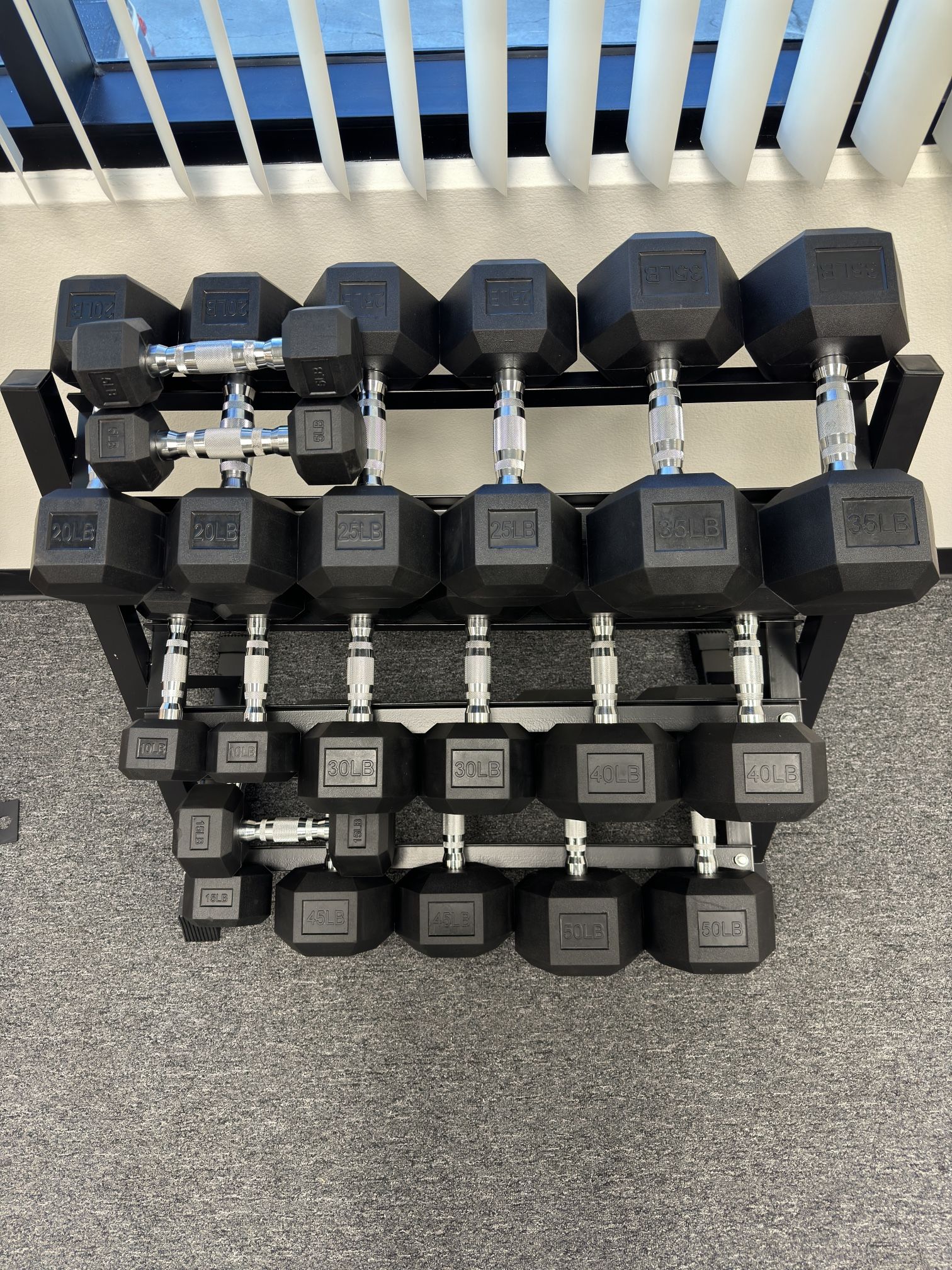**Wide Selection of Gym Equipment for Sale!** We offer a variety of high-quality gym equipment, including All-In-One Gym Systems, Squat Racks, Bench Press Racks, Cable Machines, Smith Machines, Adjustable Dumbbells, Olympic Barbells, Bumper Plates, Weight Sets, Home Fitness Equipment, Attachments, and more. ‼️ **Schedule an Appointment to Visit Our Showroom** and explore all our products on display in person! **Complete 5-50lb Rubber Hex Dumbbell Set** This set includes a range of dumbbells in 5lb increments, along with a sturdy 3-tier rack: - 2 x 50lb dumbbells - 2 x 45lb dumbbells - 2 x 40lb dumbbells - 2 x 35lb dumbbells - 2 x 30lb dumbbells - 2 x 25lb dumbbells - 2 x 20lb dumbbells - 2 x 15lb dumbbells - 2 x 10lb dumbbells - 2 x 5lb dumbbells - **3-Tier Dumbbell Rack Included** Also, check out more gym equipment available on my profile! Message me for bundle deals and additional details! Ignore⬇️⬇️⬇️ LYNX OLYMPIC WEIGHTS GYM EQUIPMENT OLYMPIC STANDARD WEIGHT SLED PUSH SLED WEIGHTS WEIGHT PESAS SQUAT RACK POWER CAGE SMITH MACHINE BENCH PRESS INCLINE DECLINE BARBELL BAR HEX BAR BUMPER PLATES ADJUSTABLE BENCH FLAT BENCH BENCH DUMBBELLS DUMBELL ADJUSTABLE DUMBBELLS KETTLE BELLS DIP STATION PULL UPS NUOBELL PEPIN PULL DOWN BATTLE ROPE BOWFLEX POWERTEC POWERBLOCKS PULLEY SYSTEM DUAL CABLE MACHINE HOIST BODY SOLID MATRIX ROGUE FITNESS EXERCISE FUNCTIONAL TRAINER