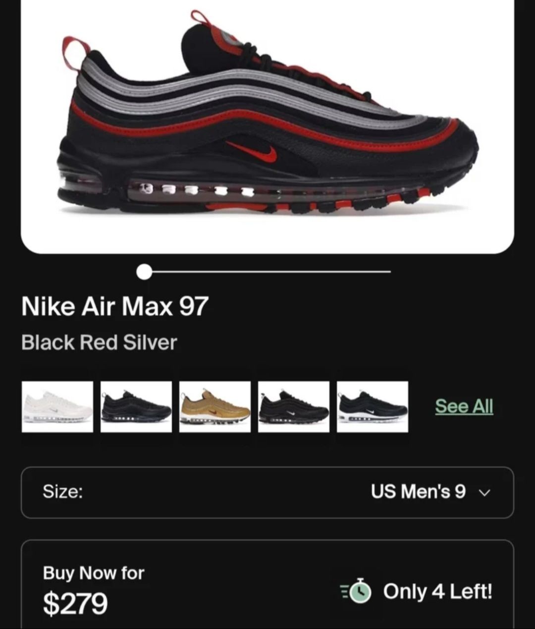Nike Air Max 97 BLACK RED SILVER USED SIZE 9
