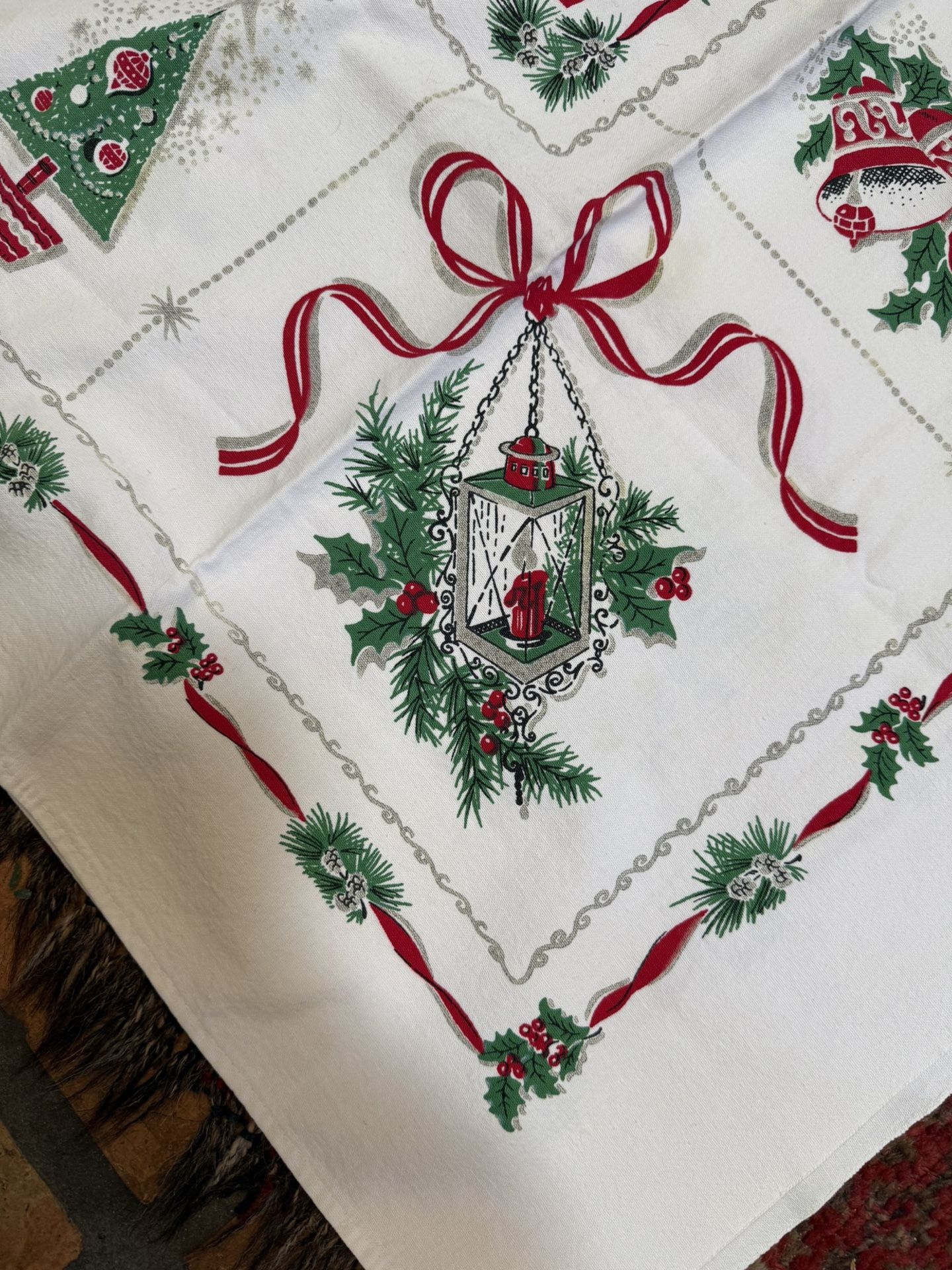 Vintage Christmas Tablecloth {as is} 58”x 53” Pickup Location near N of Dunlap & Central