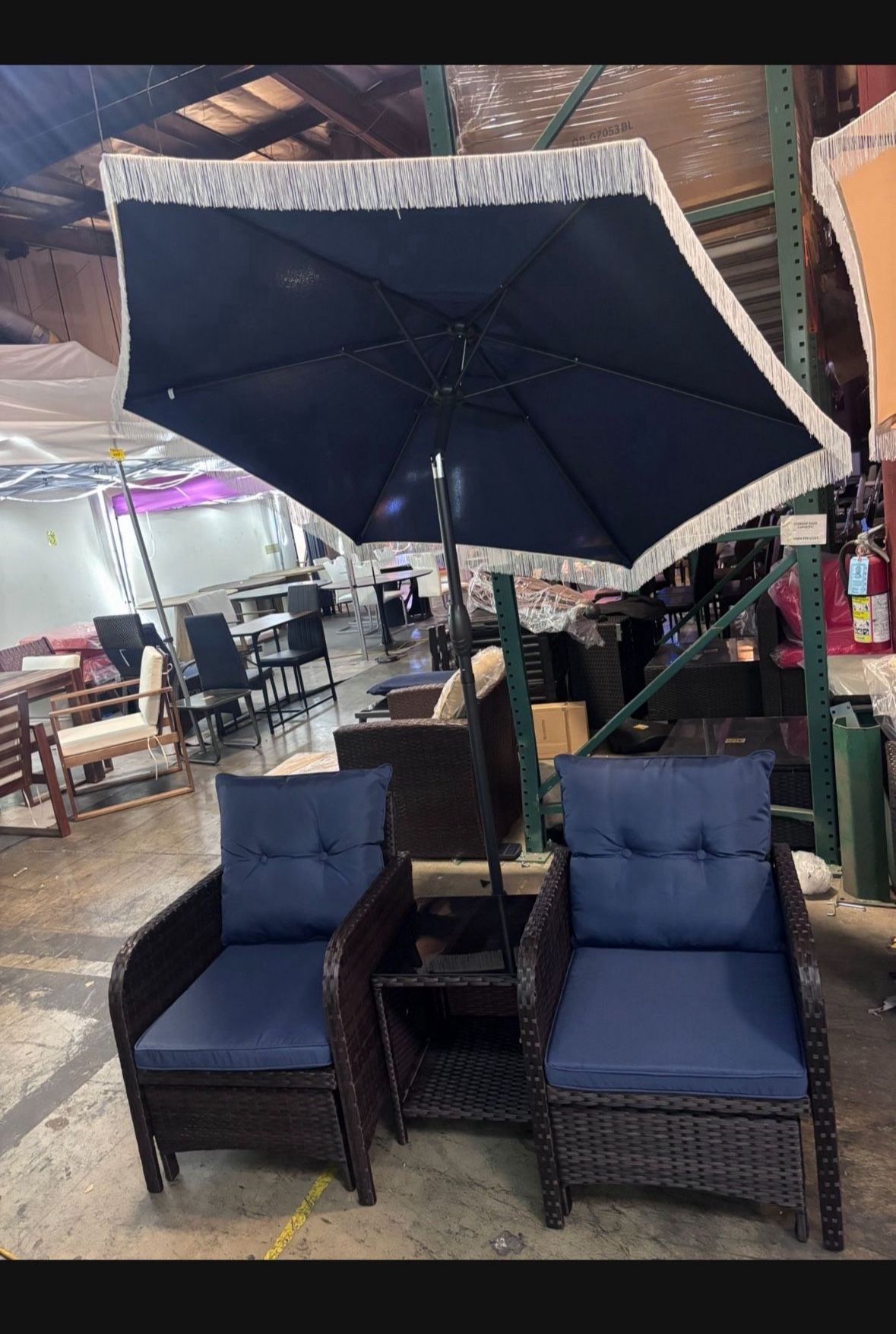 New In Box Set Of 5pcs Outdoor Set In Navy Blue And Khaki!! (umbrella Not Included)