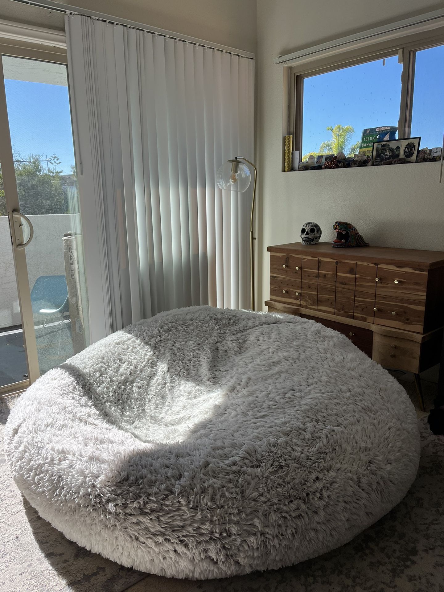 Got this bean bag 3 months ago. It’s been kept covered, I uncovered for the picture to be taken. I paid $400. Selling for $145 Brand new