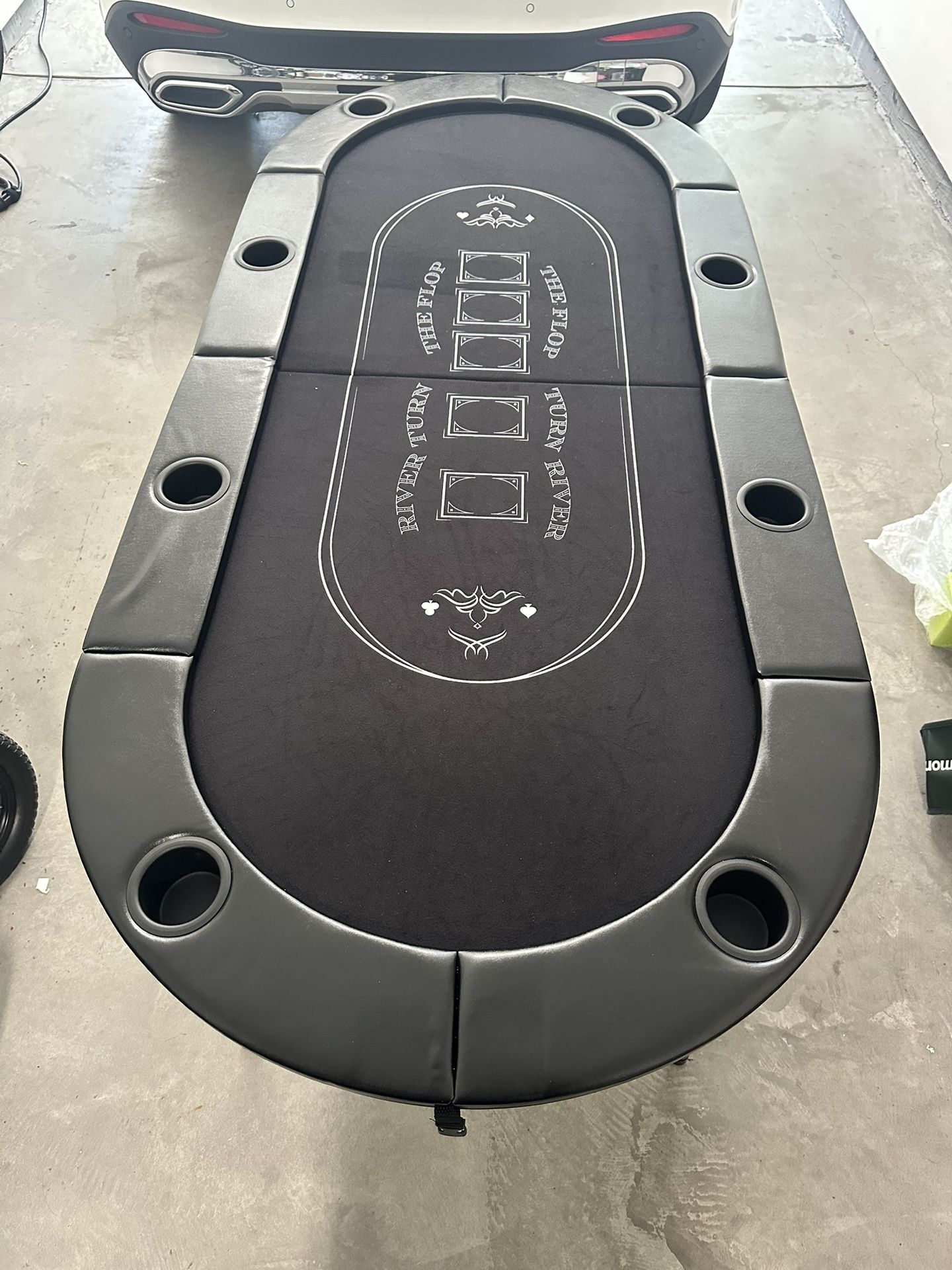 New poker table. Used only once. Foldable with cup holders. Without chairs $125 or with $150.