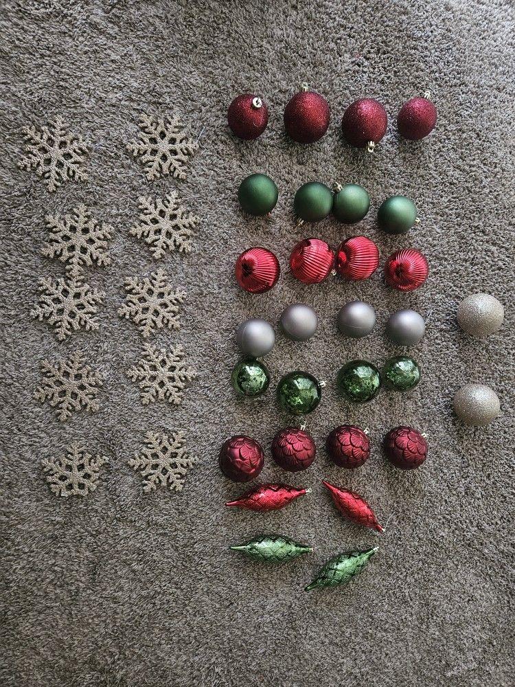 40 total - 2 with some slight damage Red, green, silver and gold color