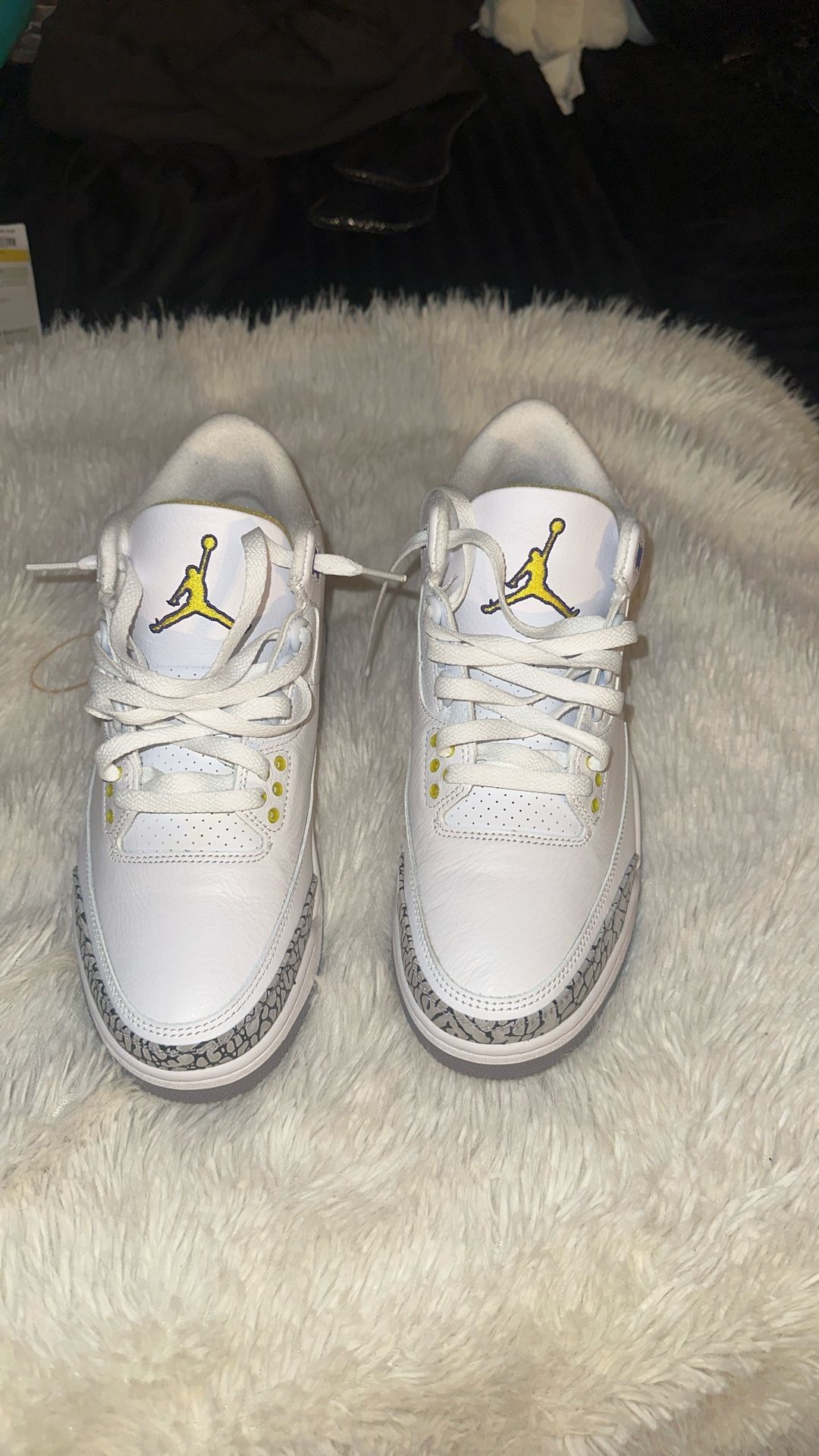 Brand new jordan 3 yellow and purple never worn