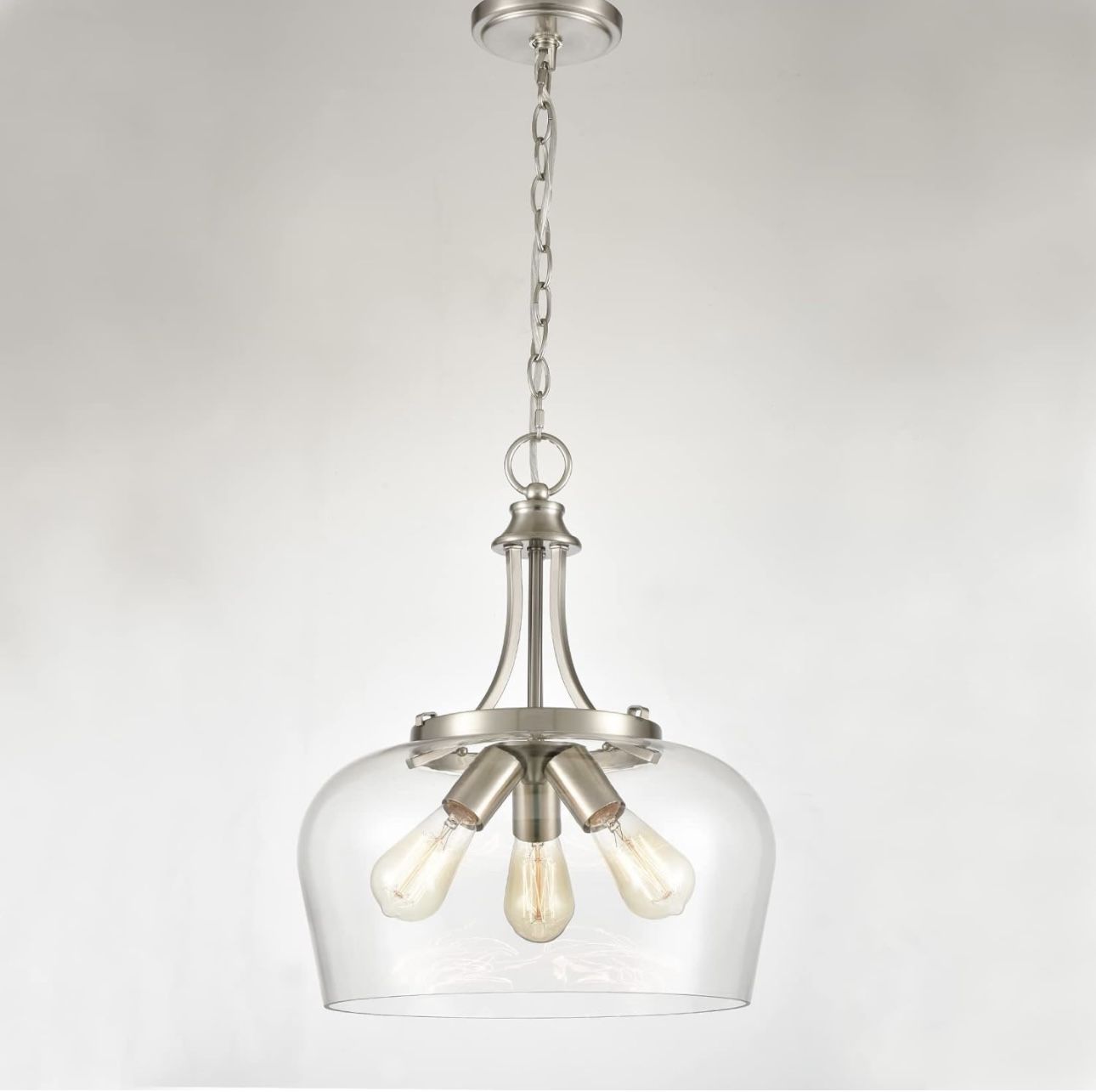 Brushed Nickel Pendant Light 3-Light Clear Glass Pendant Lighting Fixture