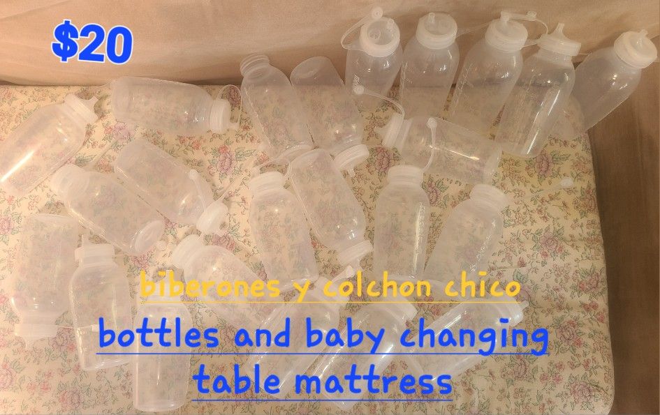 Used Baby Bottles And Changing Table Mat