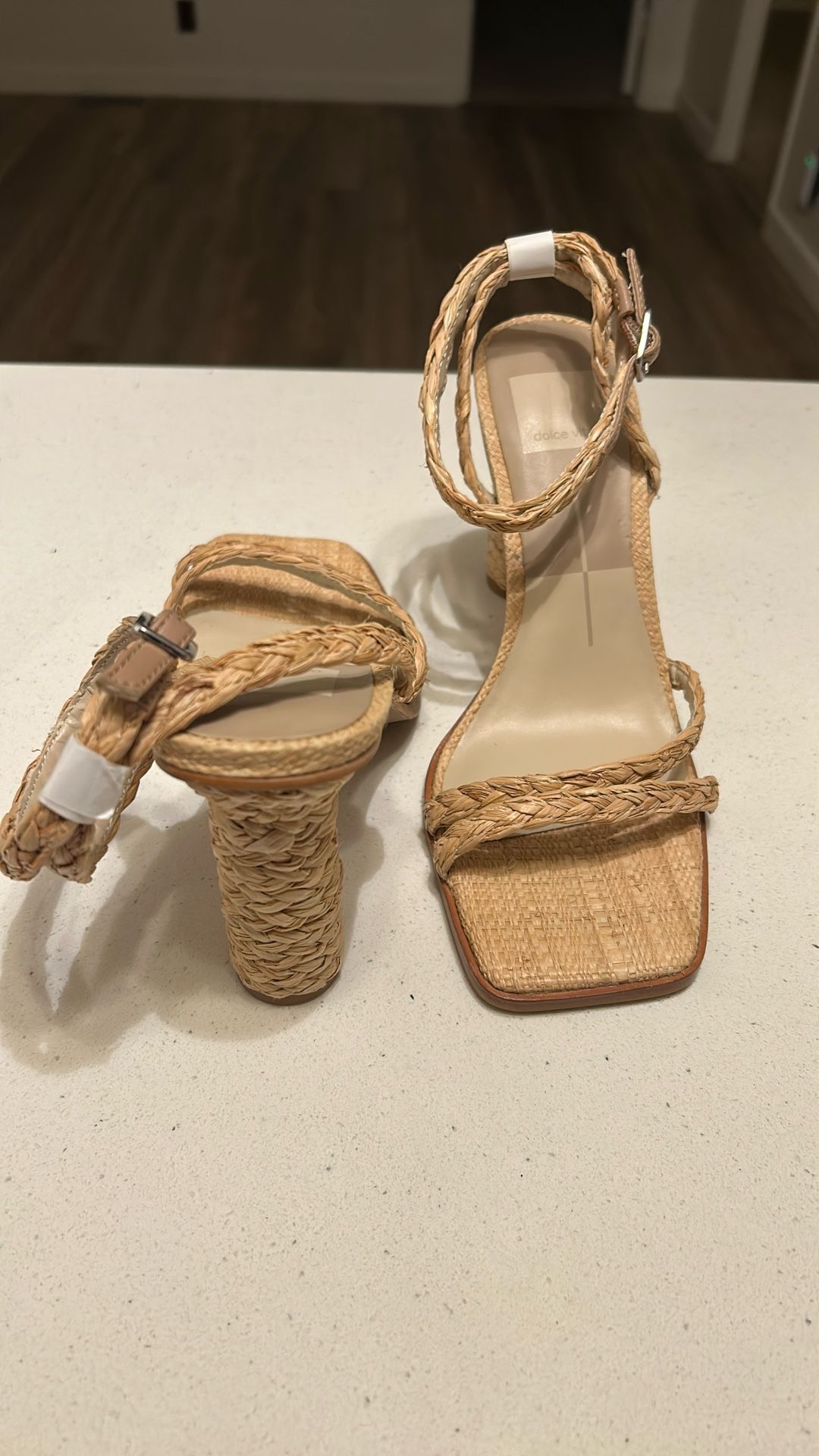 Brand new never worn Size 8 Beige in color , open toe Straps around ankle