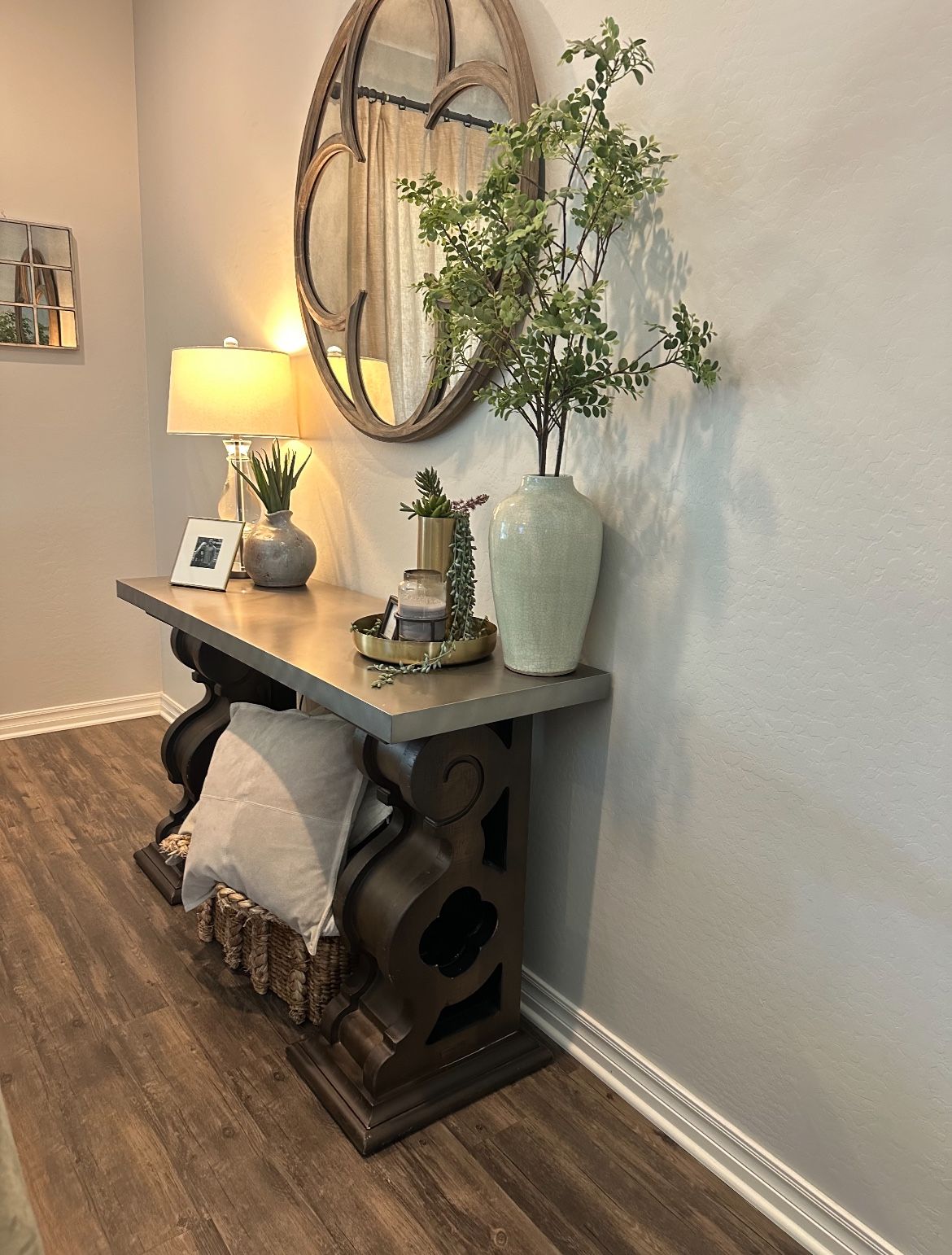 Very Nice Magnolia Home Console Table Paid Over $700 New. Measures: 60” Width 34” Height 20” Depth *Table Only, Other Items Aren’t For Sale*