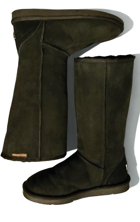 Popular for it's stylish and comfort winter boots. Durable and comfortable for cold weather. Brand: Koalabi Australia. Origin: Koalabi is an Australian family business that has been manufacturing sheepskin products for over 25 years with premium materials, made in Australia. Materials & Quality: They use genuine double-faced Australian sheepskin, which is known for its high quality, warmth retention, and durability. The material is typically soft suede on the outside with plush fleece lining inside. Design: Classic Mid-calf soft suede and plush fleece linner boots. Women's size 8 Stock #WG15