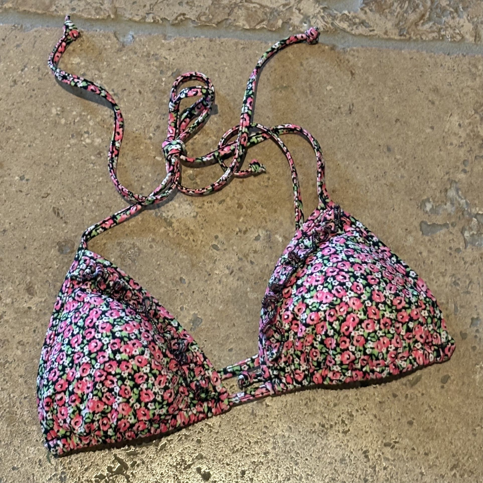 Pre-owned in great condition with no rips or stains. Colorful floral bikini top with adjustable straps. Has padding. No size or material tag inside. Fits like a size small. Perfect for summer. Comes from smoke and pet free home.