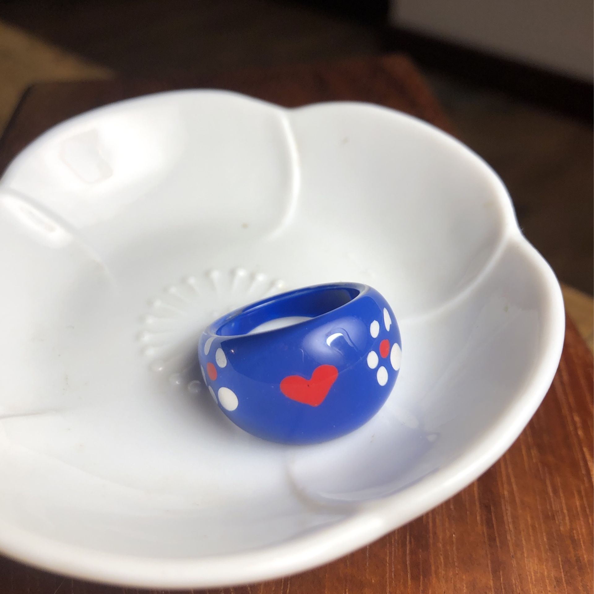 Authentic 90s Vintage Blue & Red Flower & Heart Plastic Ring