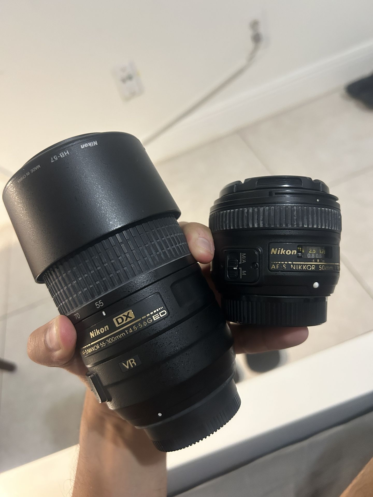Get a combo to start with your photography journey Af-s Nikkor 50mm 1.8G Af-s Nikkor 55-300mm 4.5-5.6 ED Used lenses ! Hablo español