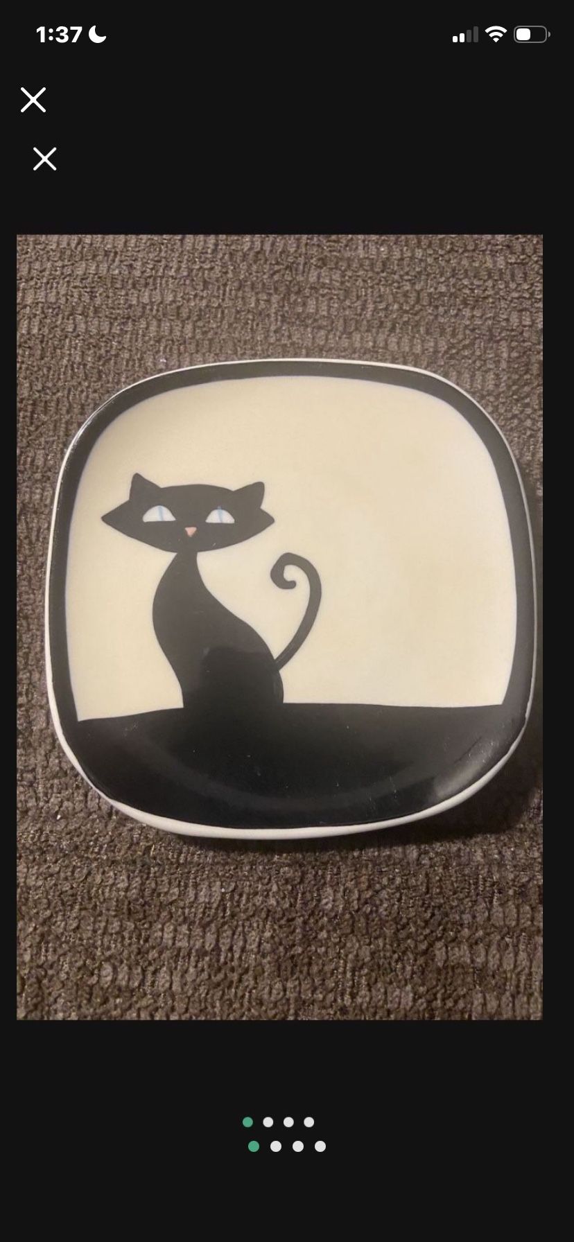 Vintage Classic Hues N Brews White Black Cat Cattitude Trinket Dish Saucer