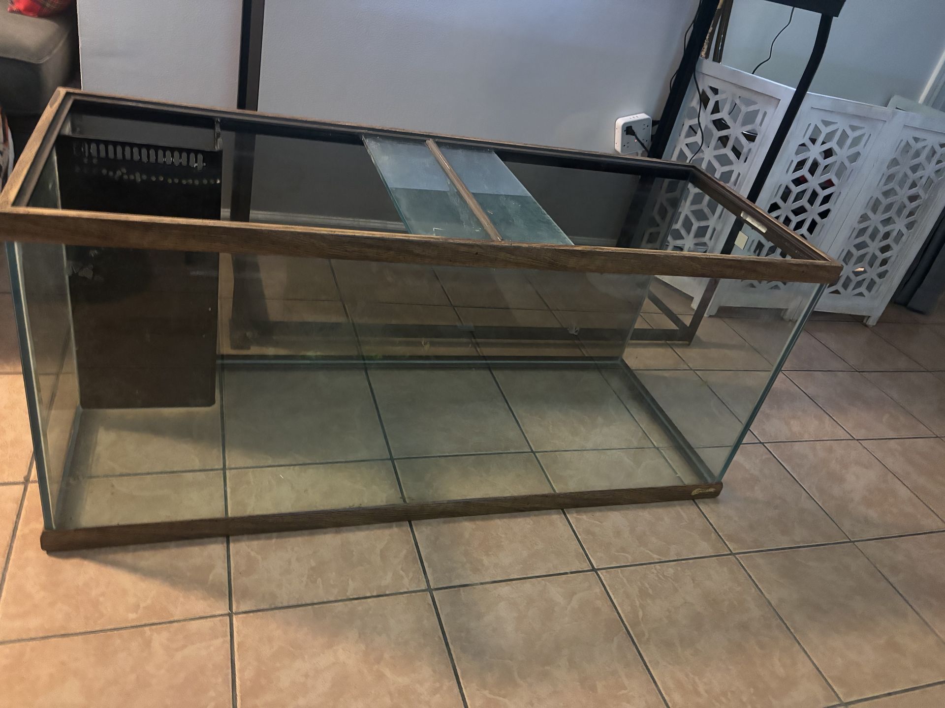 Like brand new was holding water yesterday with African cichlids inside. Glass is pristine/back glass is tinted ofc. silicon is truly in pristine condition ready for salt or freshwater serious inquiries only please don’t waste anybody’s time they don’t make fish tanks like this anymore. We all know that.