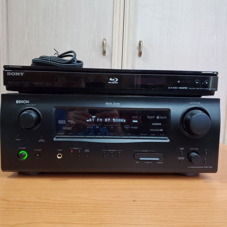 Denon Av Surround Receiver AVR 1708 Remote Sony Blu-ray Disc Player BDP S380 24 Hour Test Period Money Refunded If Not Satisfied