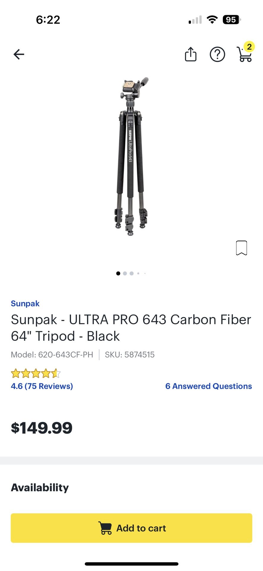 Yes, it’s still available!!! Used Sunpak -Ultra pro 643 carbo fiber 64” tripod - black (620-643CF-PH) No carry case
