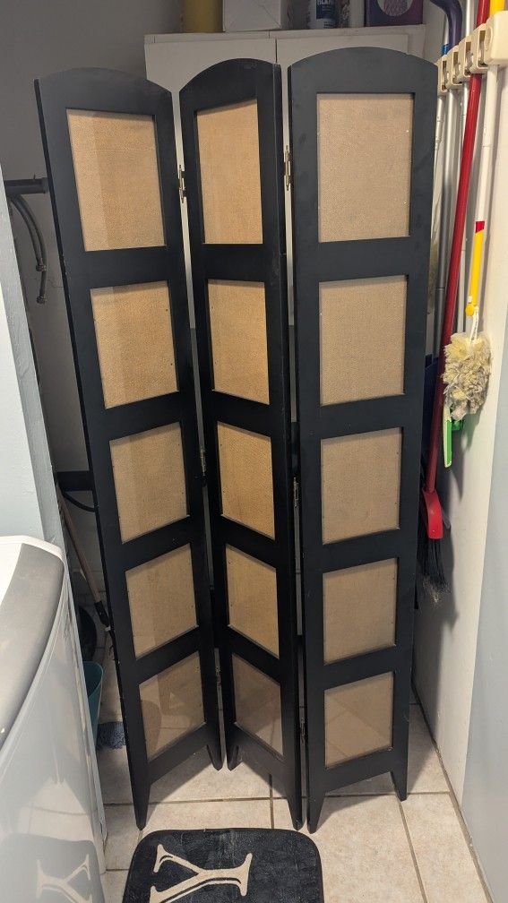 Picture Photo Triple-Panel Wood Room Divider - Black
