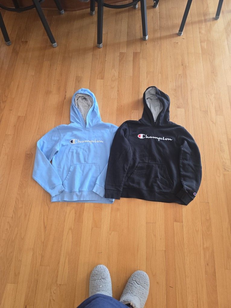 Champion hooded sweatshirts in good condition. 2 for $25 (cash), local pick up only. Size Youth XL