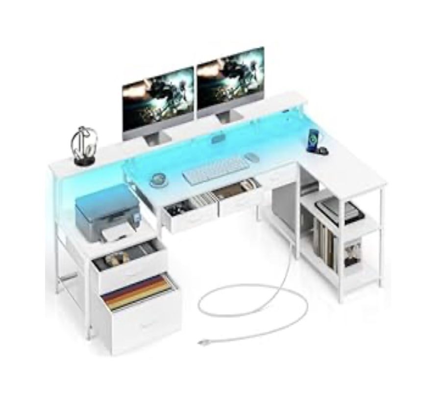 66” L Shaped Desk with Power Outlet, Reversible Computer Gaming Desk with File Drawer & 2 Monitor Stands for Home Office with Storage Shelves, White. Product Dimensions 18.9"D x 66.14"W x 29.52"H