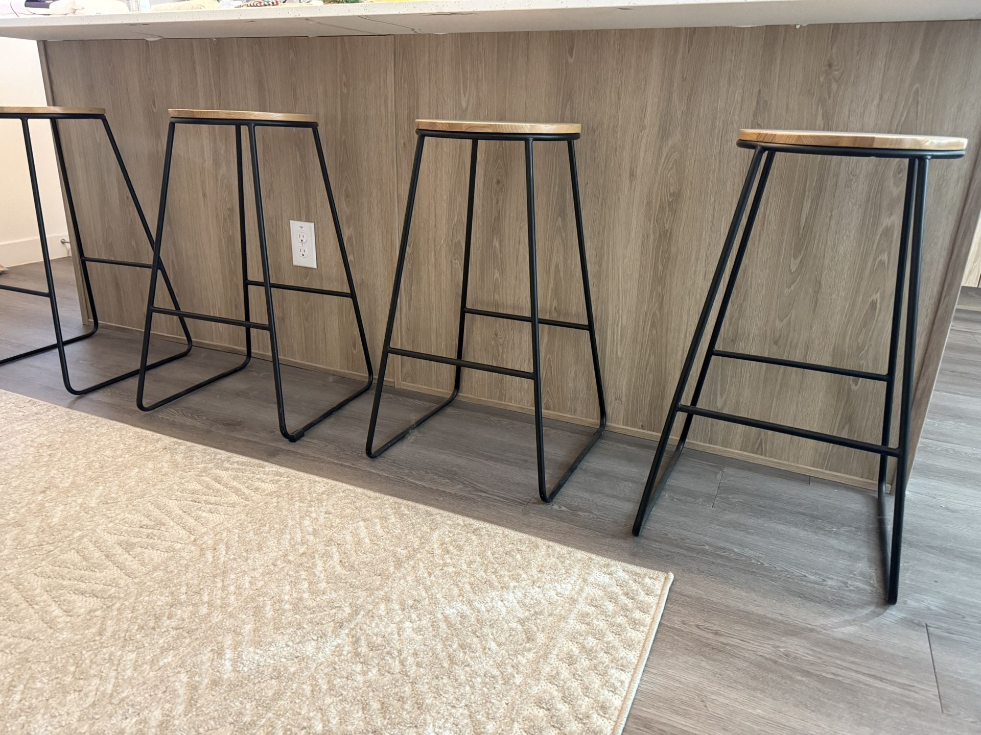 Set of 4 bar stools 28 in tall, 14 in diameter Base is 16x16 in