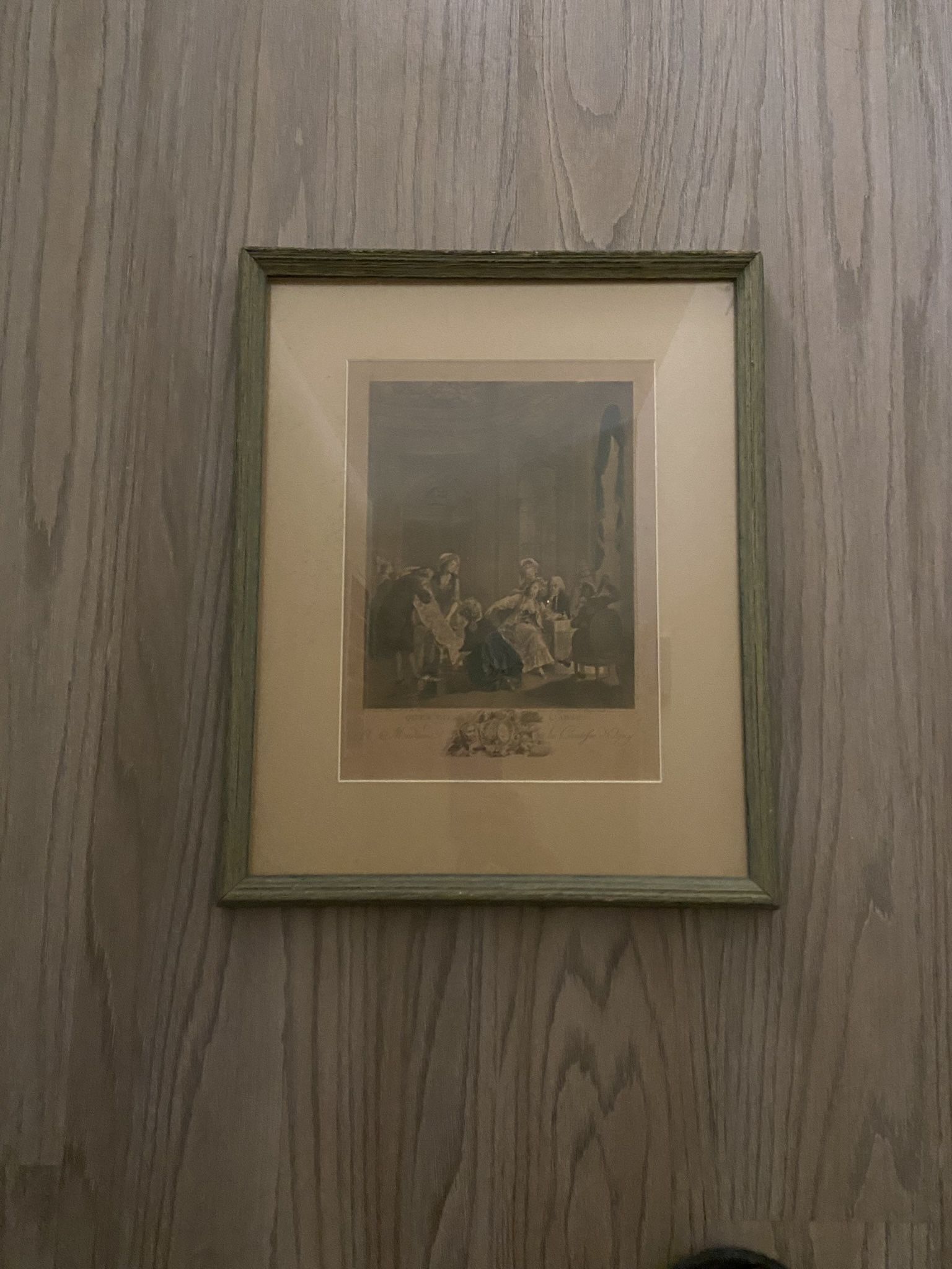 Vintage French Framed Art 16” x 19” In Vintage Green Frame. Qu’en Dit L’Abbe A Madame La Comlefse I’Ogny (Translates to: What does the Clergy say to Madame the Countess of Ogny). By Artist: Augustin de Saint-Aubin You pickup in Edmonds.