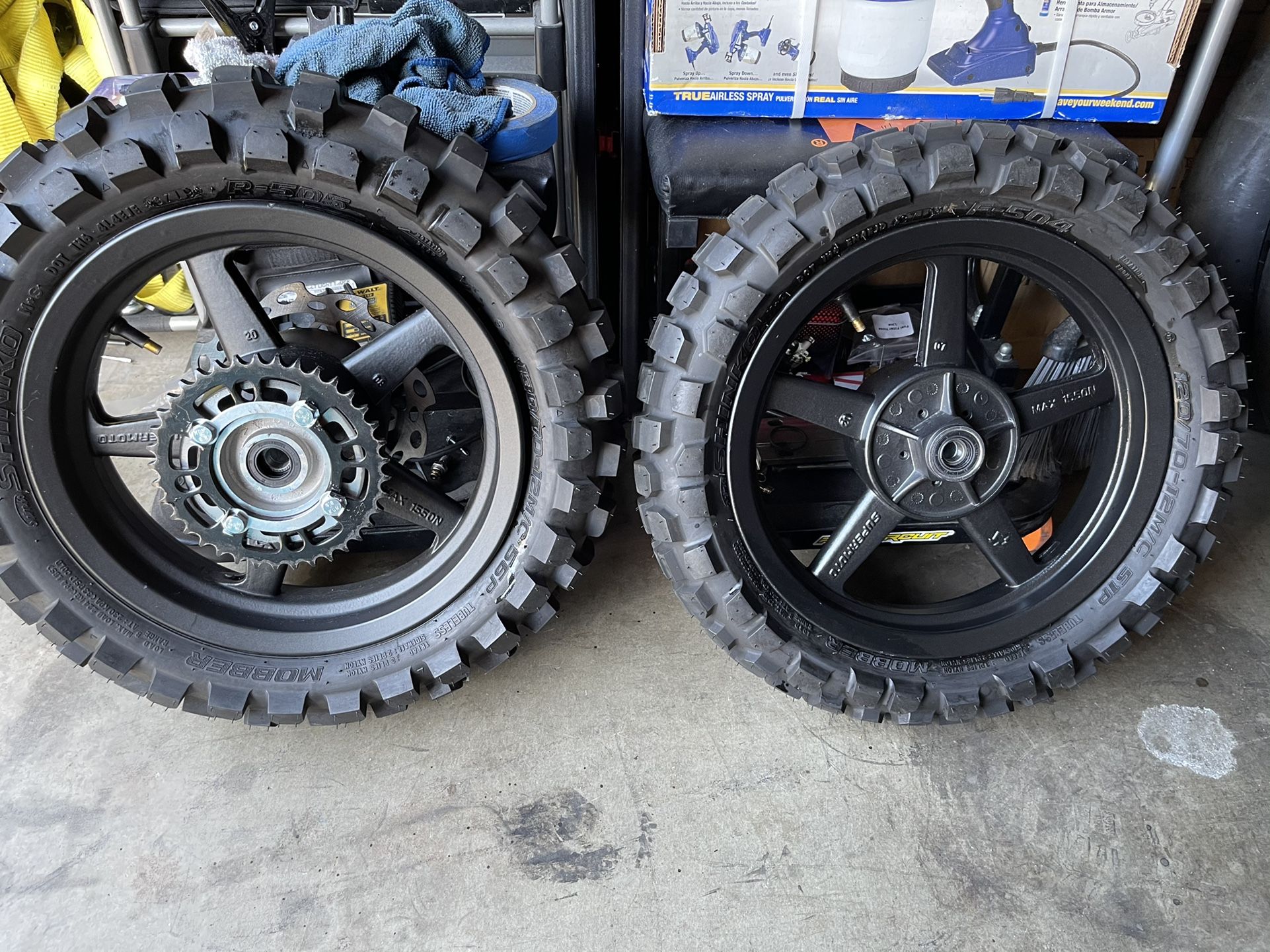 New condition. Shinko R-505 130/70-12 M/C 56P TUBELESS MOBBER Tires With Black Rims - 1 Pair. The Shinko Mobber Tire Ride where you want and how you want. The Shinko Mobber tire is your all access pass to whatever terrain you dare. DOT approved to get you there and a tread pattern to let you MOB through it! SKU:87-4791 Tire Size:130/70-12 Model:505 MOBBER Tire Width:120 Aspect Ratio:70 Rim Size:12 Position:FRONT Load Rating:56 (max 494 Lbs.) Speed Rating:P (max 93 mph) SideWall:BLACKWALL