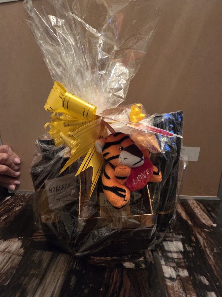 In this basket you get the following items that are brand new never used, its all from bath and body works not cheap items like other baskets. Picture shows what you get and the other picture shows it wrapped up and ready to go with cute little plush and cute valentines day card on it. 1. Honorable mens cologne 3.4oz worth $65 2. Mens honorable hair, face and body wash 10oz worth $16 3. Noir 48 hour moisturizing body cream worth $18 4. Cute little stuffed animals with card attached to the basket Total value with tax $110, all yours for only $45