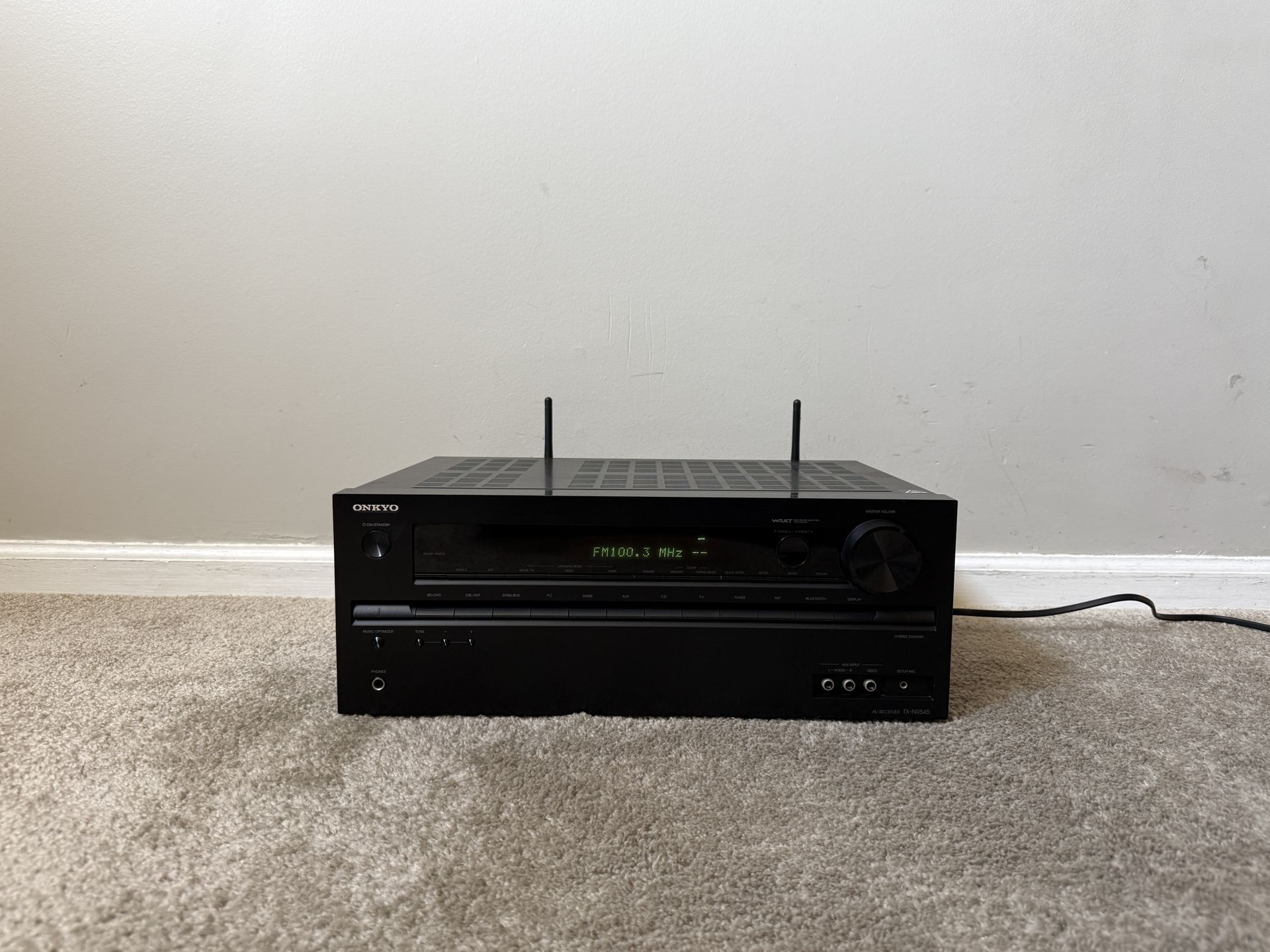 Onkyo TX-NR545 7.2 multi channel home theater surround sound audio video av receiver in good working and cosmetic condition! The receiver has so many options: 6 HDMI in and 1 Out, Network Internet Ready, WiFi, Bluetooth, USB input, 4K ultra HD hdcp2.2, decoding for 5.1.2 Dolby Atmos and DTS:X, optical inputs and many more. The amplifier section is rated 65 watts per channel and you can do 7 speakers, plus zone 2, plus 2 powered subwoofers. Perfect home theater surround amp and it comes with the remote control. Tested, working great and I will have it hooked up to the garage TV and speakers so you can hear and see it working before buying!