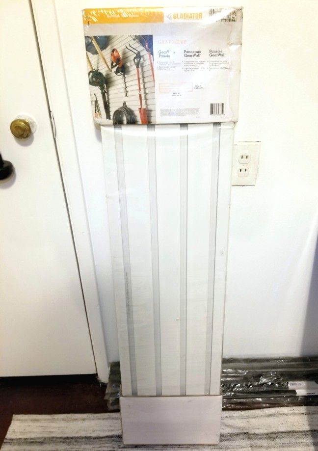 Gladiator 4' Gear Wall (2 Pack) - Garage Slat Wall Organization Panels Organize your home, garage or workshop with Gladiator's heavy-duty 4 ft. GearWall Panels. The slat-wall style panels are the foundation of the Gladiator Wall System, designed to help you "reclaim the floor" by maximizing your wall storage capabilities. Customize your space with ease by adding these 12 in. H x 48 in. W panels to bare studs or drywall-finished walls. Endless storage possibilities are at your fingertips with this versatile and easy-to-install set, perfect for organizing tools, gardening supplies and other accessories. Each GearWall panel holds 50 lbs. per sq. ft. Can be mounted on bare wood studs or drywall for easy installation Heavy-duty composite construction for strength and durability Hang heavy items like loaded storage cabinets or bikes or simply add organization to any room in your home that may need it Perfect for organizing tools, lawn care and gardening equipment, cleaning supplies and more 4 ft. panels can be used together or separately to best suit your storage needs Tongue-and-groove panel design locks panels together for fast and easy installation Designed to handle extremes of heat, cold and humidity Two 48 in. x 12 in. panels provide 8 lin. ft. of storage space
