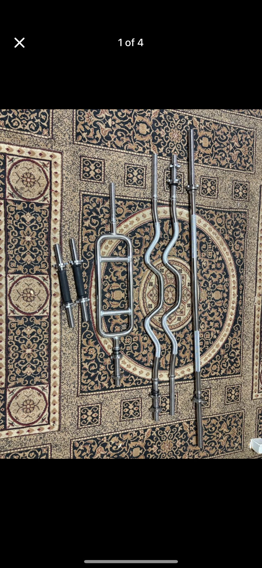 5ft straight bar 20$ Curl bar 25$ Tricep bar 30$ Adjustable dumbbell handles 20$ Firm on price and don’t do any package deal