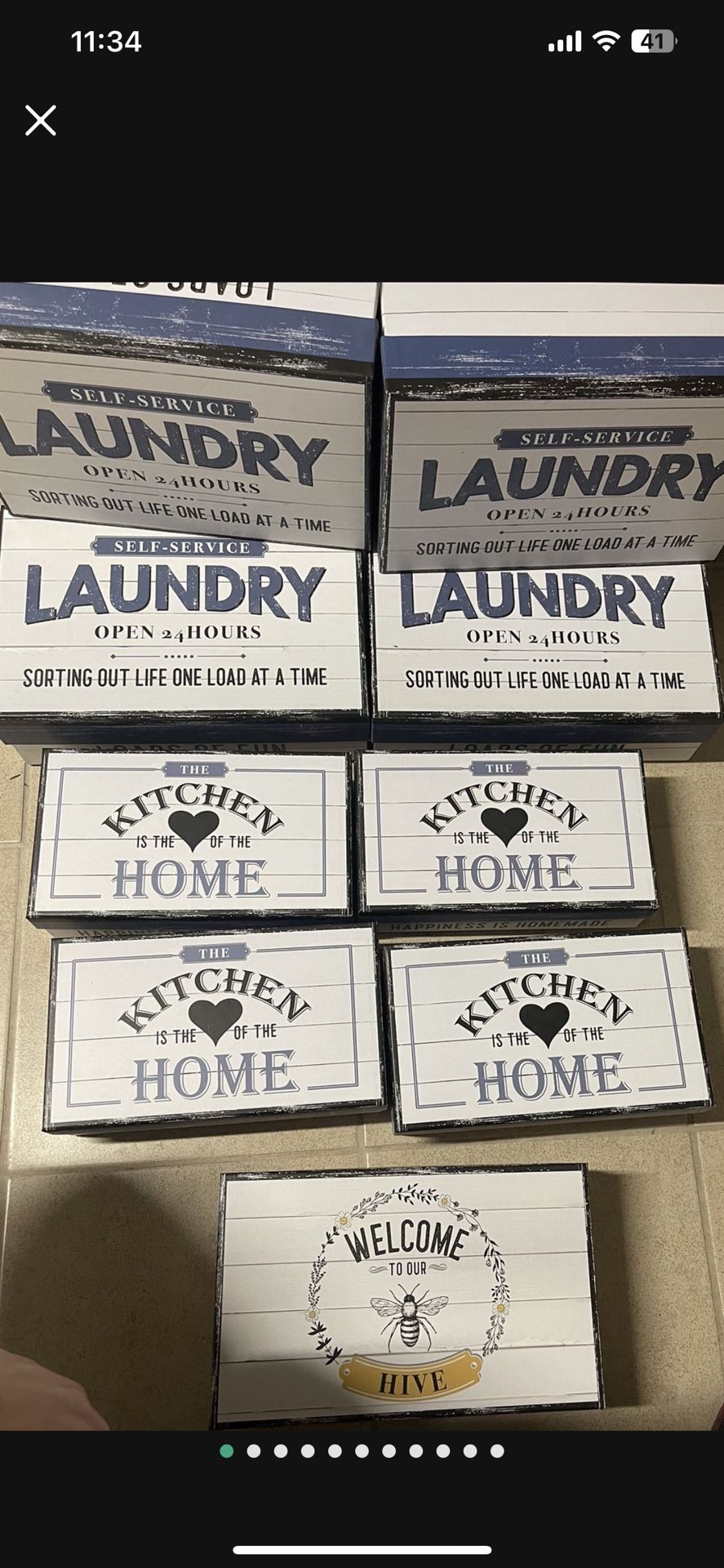 All brand new Gift Boxes/Keepsake Box I have 4 -laundry I have 4- kitchen is a home 1- bee Extras from my babyshower gifts/etc. $3 per box