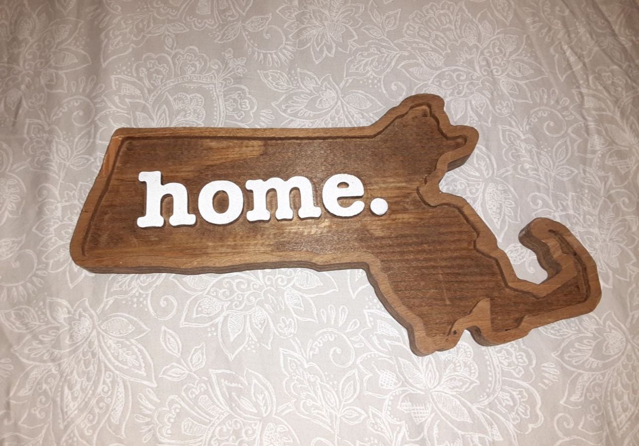 Solid Wood Massachusetts wall decor. In great condition. If you see it, dit’s available! Follow me to see new items added weekly!