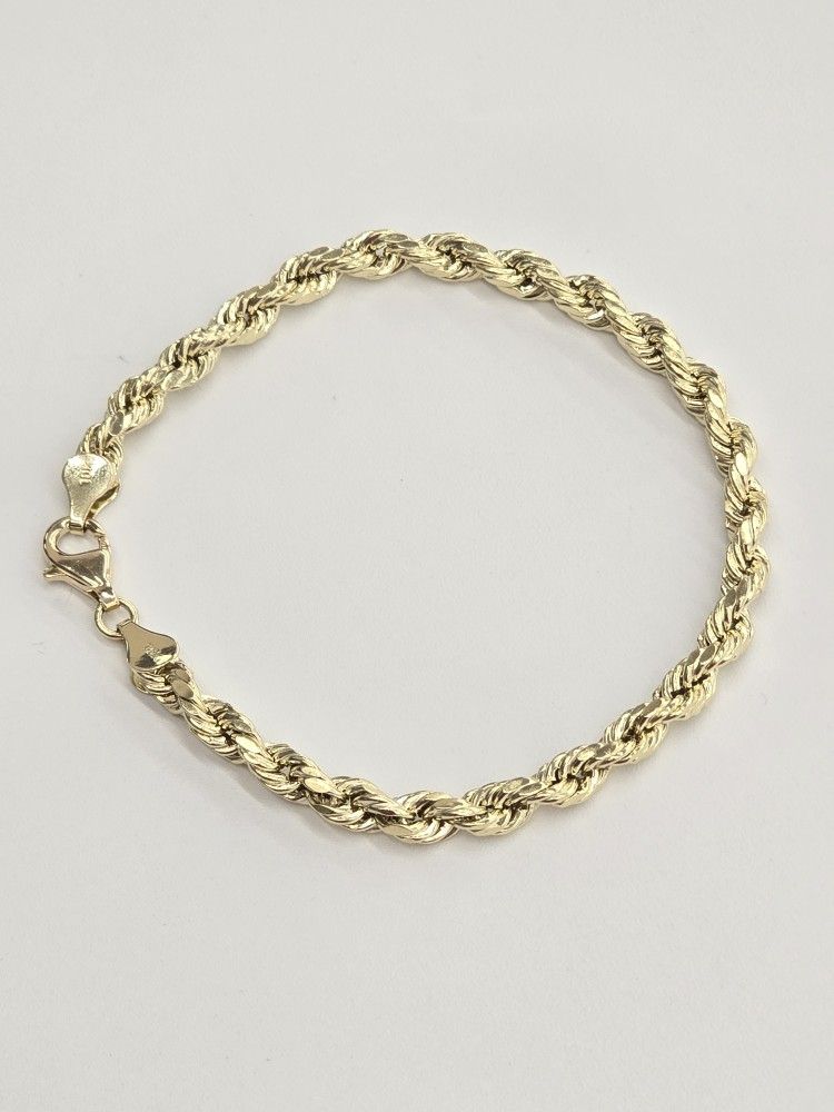 10kt Real Gold Rope Bracelet Width: 5.5 mm Length 8.5 Inch Weight: 5.10 gm Style: Hollow Please check the picture carefully to understand the size of the thickness and length 100% Authentic 10kt Gold Not a gold plated or not a gold filled Comes in a gift box