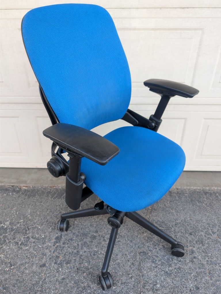 Steelcase Leap V2 Ergonomic Office Desk Task Chair Blue Fabric & Black Frame Fully Functional Adjustments: Seat Height & Depth Recline Tension & Limit Lumbar Height & Depth 4D Arms Pick Up or Delivery For A Fee