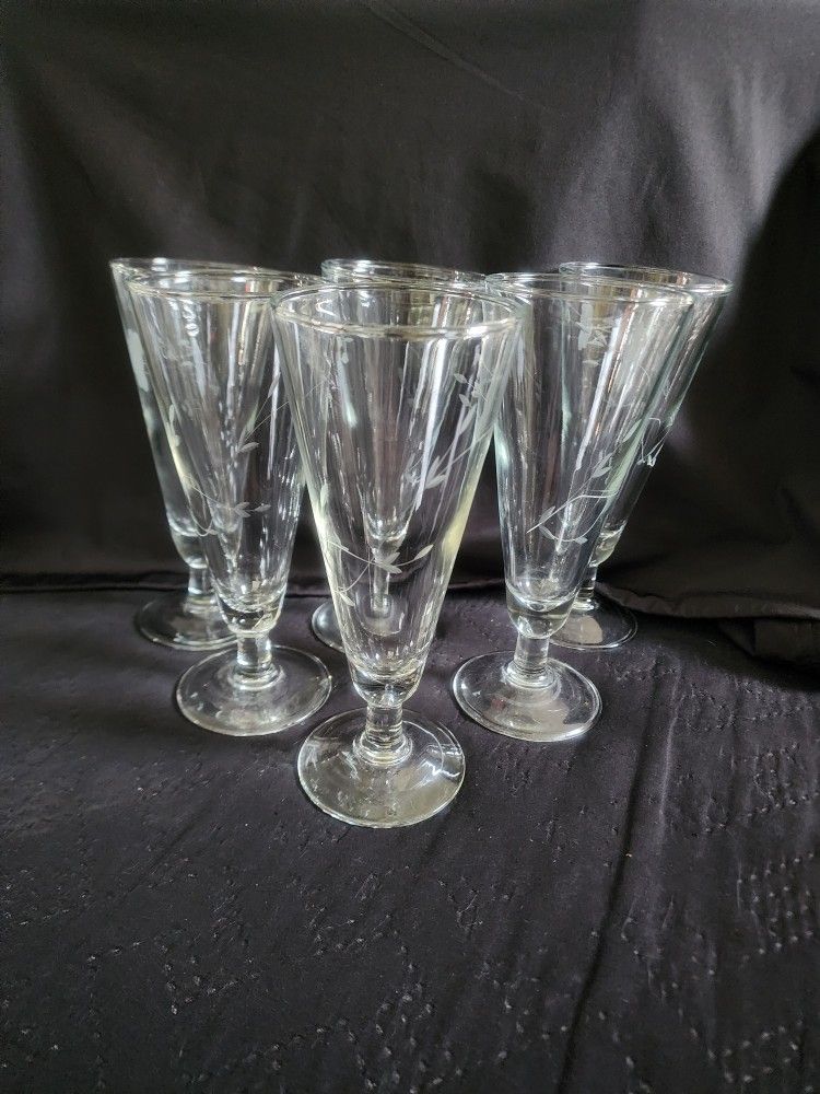 Princess House Heritage Etched Crystal Pilsner Beer Glasses.