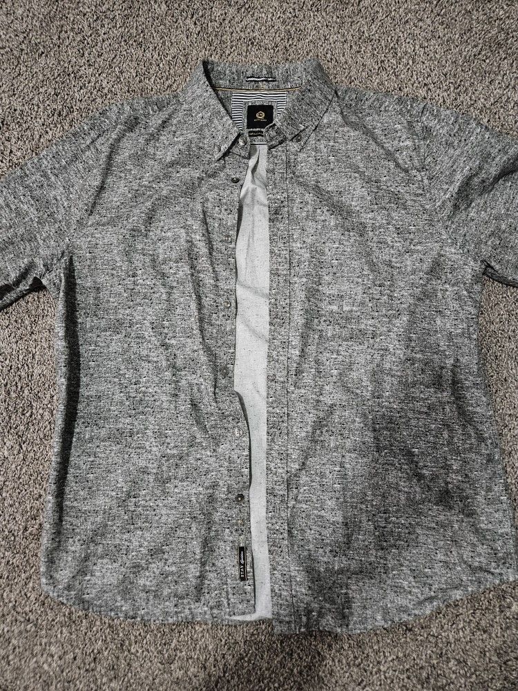Ricky Singh Stay Golden Button Up Shirt Gray Speckled Tag XL Fits Like L