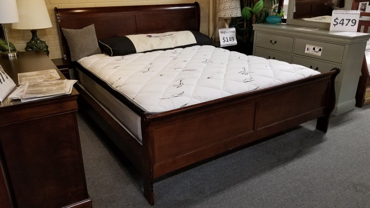 Brand New Dark Cherry/White/Black/Gray Sleigh Queen Bedframe 🔥Instant online financing approval 💰 To apply for Snap Finance, Text 2068 to ☎️ 48078 👍No credit check, no interests if paid off within 90 days 🚛 Same day delivery available l⏰️ Price is good only for 90 days 📍 Ace Furniture 3672 El Cajon Blvd San Diego, CA 92104 ⏳ Open: 10AM - 7PM Every Day ☎️619 528 1200