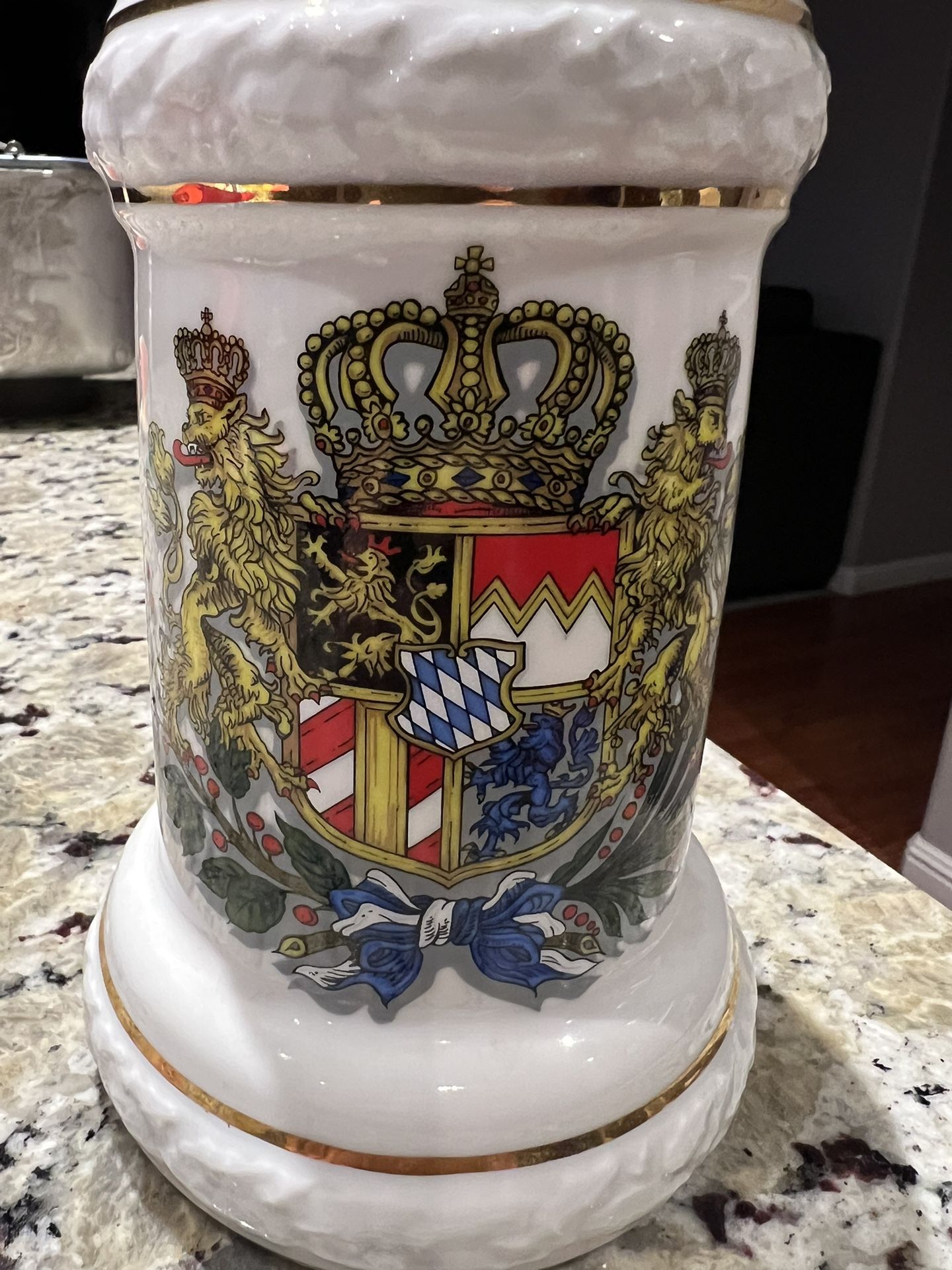 Allen Hansel European Gifts Bavarian Crest Stein. Brand New with original tag from Leavenworth Washington. Porcelain with zinc lid. Purchased over 20 years ago for well over $150. Not sure about current value. Mug, glass, collectors item. Open to trades on good value items. Feel free to ask! Please check out some of my other items I have posted.