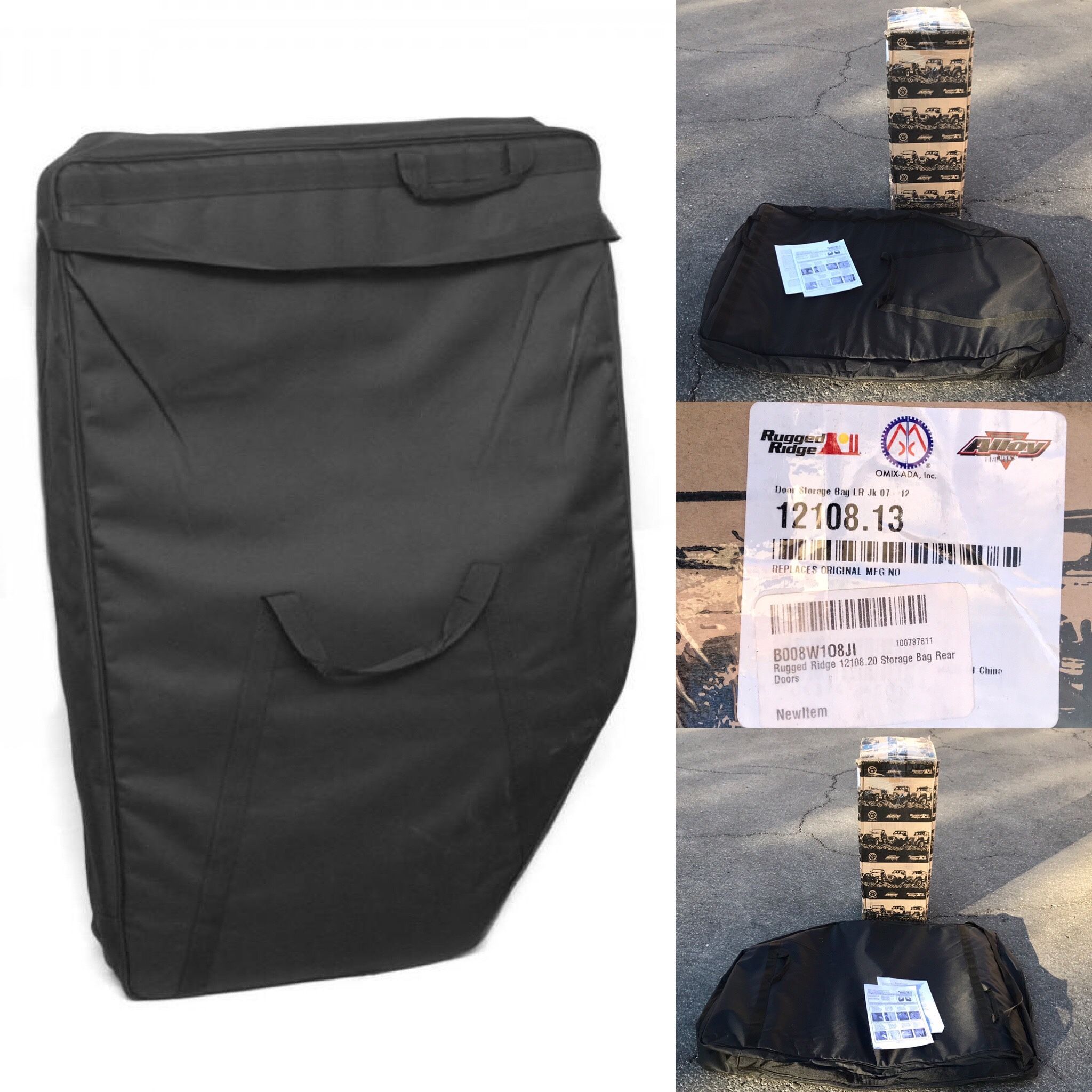 Brand new. Features: Tough nylon webbing Oversized zippers Weather resistant Easy carry and storage Description: Prolong the life of your hard doors with this handy storage option from Rugged Ridge. Each storage bag features special soft sided fabric that cradles your hard door. We use oversized zippers and durable nylon fabrics for long life and weather resistance. Special handle placement allows for easy carrying and storage.