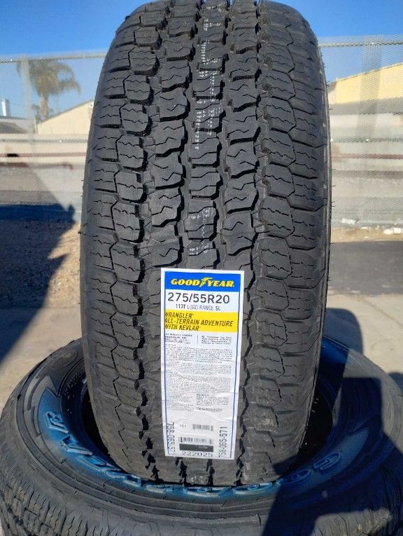 Tires New Goodyear Wrangler All Terrain Kevlar 275 55R20 $680 Set Of Four Install Mount And Balance