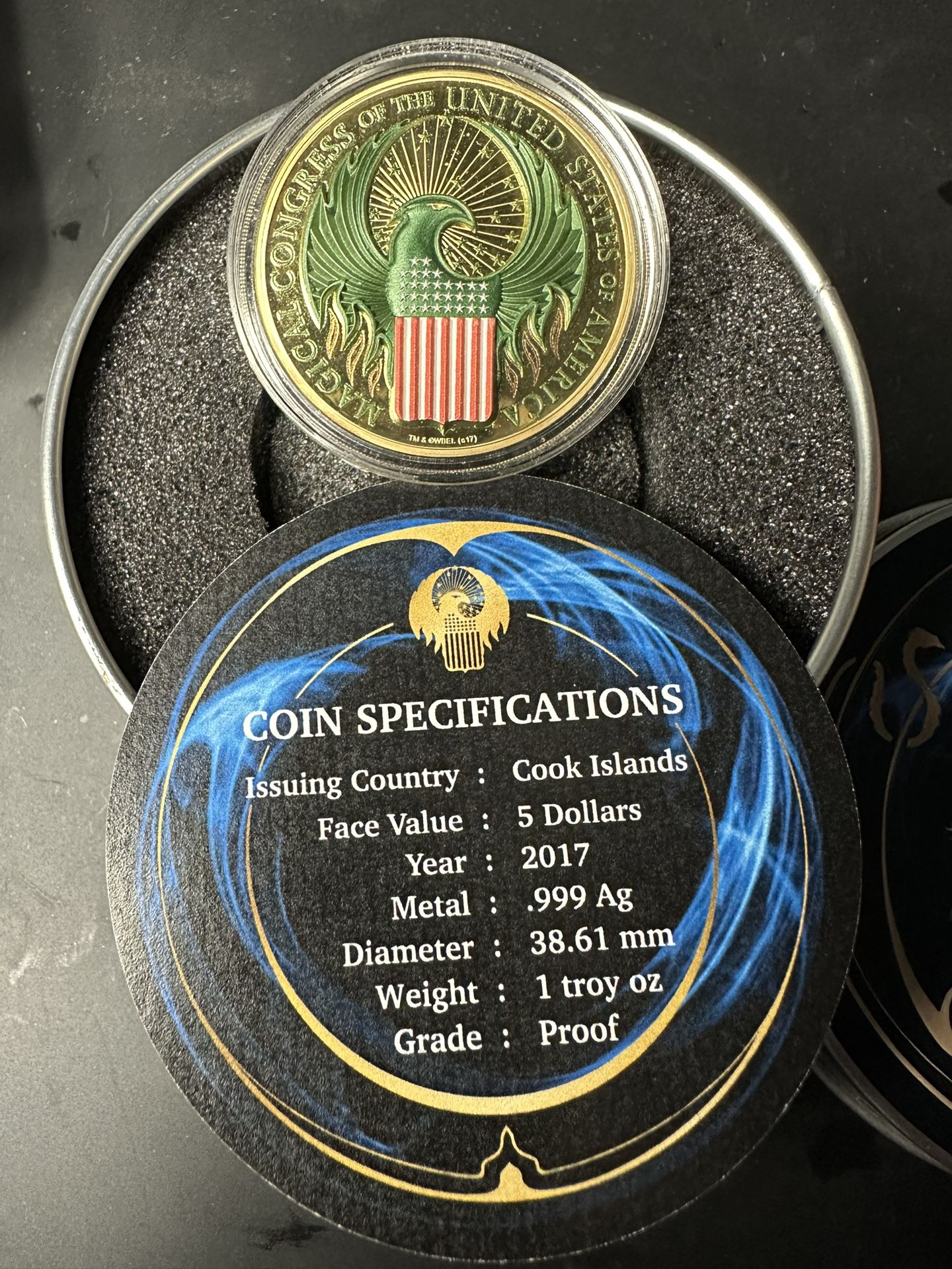 I have this Cook Island 1 ounce silver round 2017 government backed comes in a Tin case please see pictures for example
