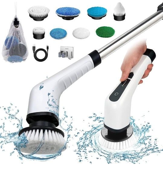 Electric Spin Scrubber, Cordless Bath Tub Power Scrubber with 8 Replaceable Drill Brush Heads, Shower Cleaning Brush with Adjustable Handle for Bathro