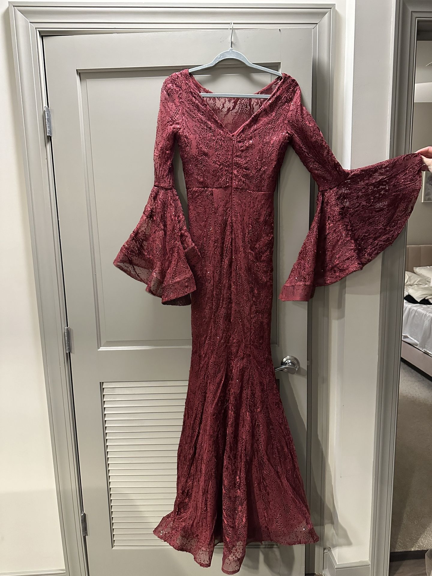 Mermaid style dress with bell sleeves. Worn once. Size small (4)