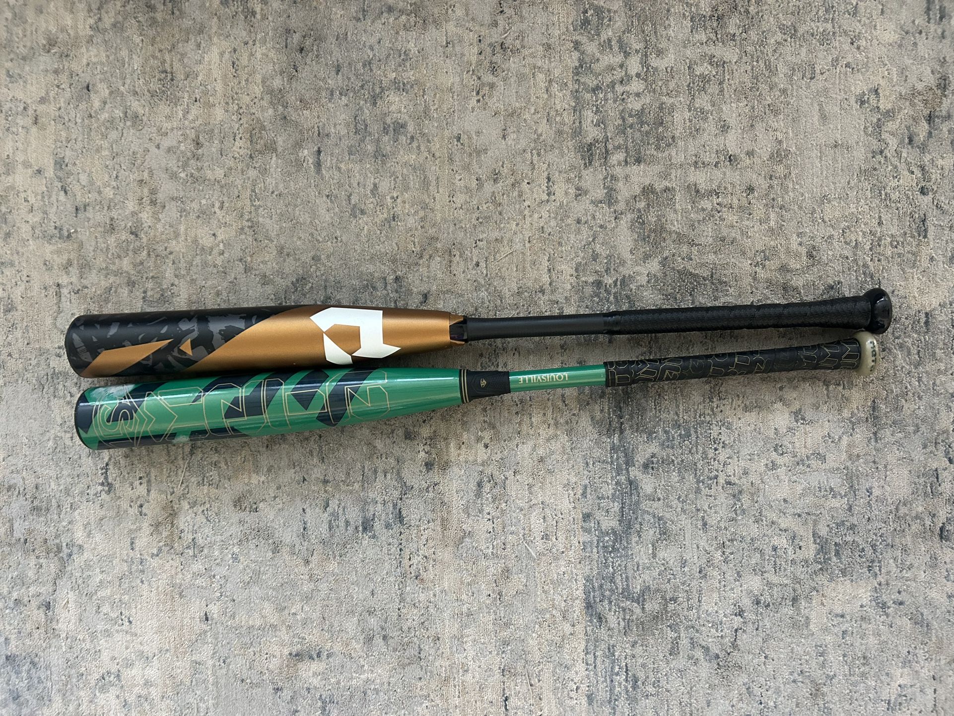 First bat I have is the Green Louisville Meta it is a 31 inch drop 5 bat. It has been used to hit about 10-15 baseballs. It’s very lightly used. 100 Dollars for this bat! Next bat I have is the Demarini Zoa it is a 32 inch drop 5. This bat is completely brand new and has never been swung before. 150 Dollars for this bat!
