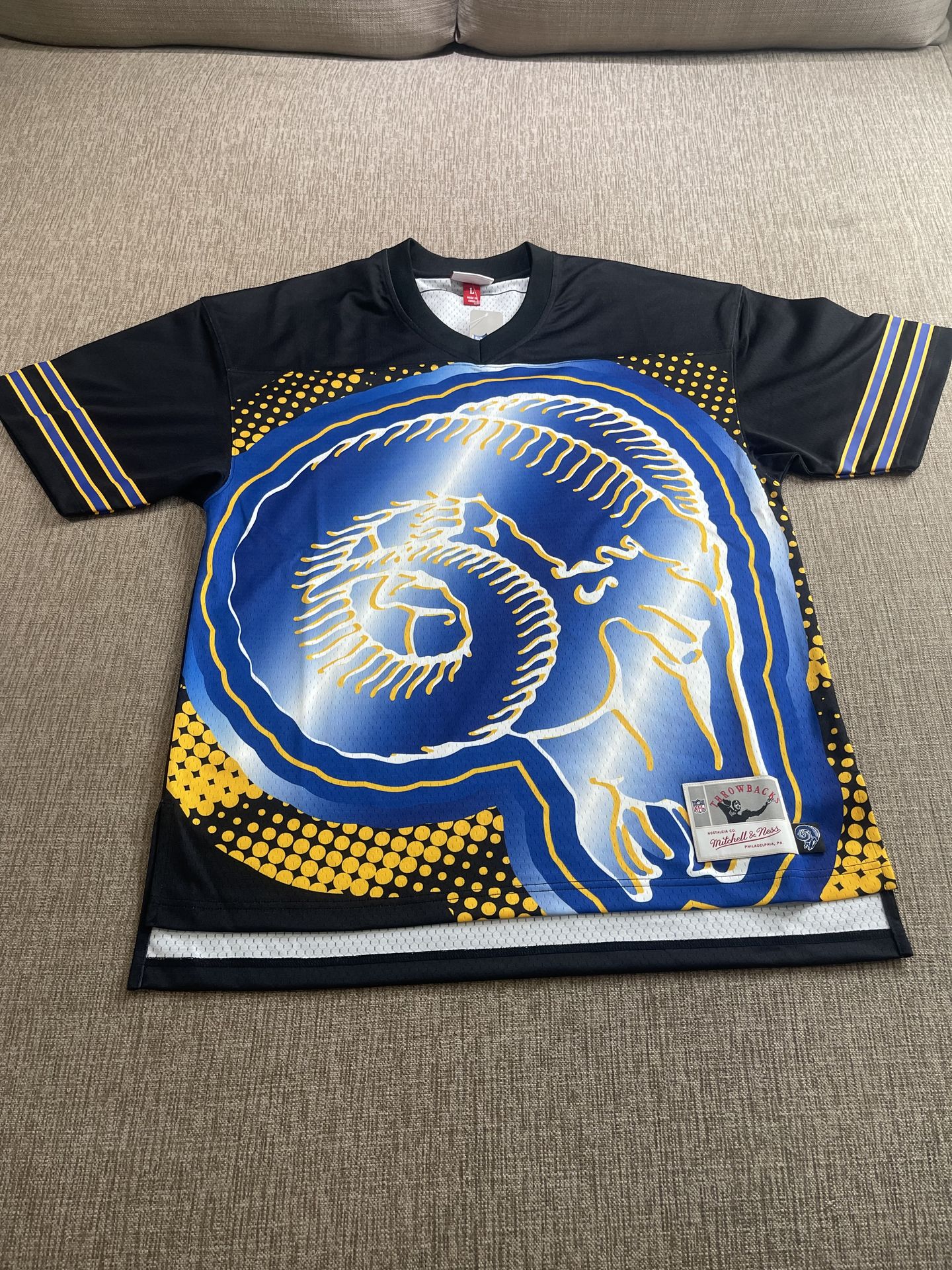 Rams Big Face Fashion Jersey by Mitchell and Ness. Throwback Jersey with Big Face Ram. Stand out with your Jersey.