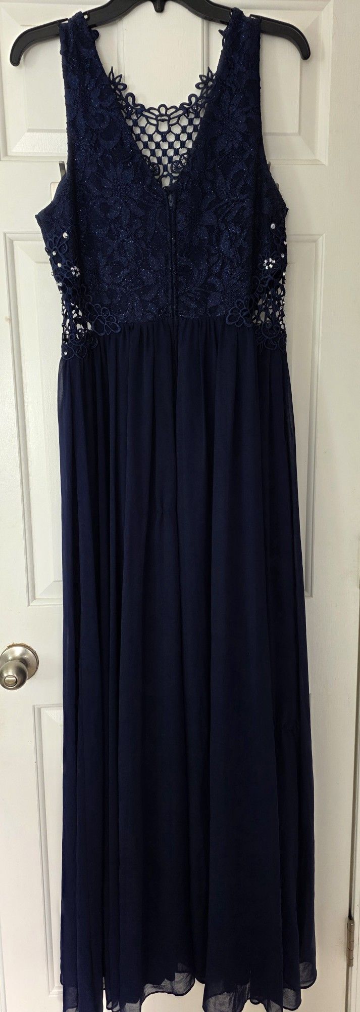 Size says 11. I wear a size 6 and it fits me. I think it will fit many sizes. Worn once. Navy Blue with side cutouts and side slit on leg. $ 20.00 Check out my other listings